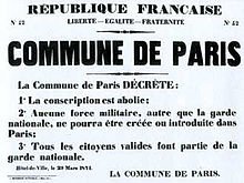 Em 26 de março de 1871, realizaram-se eleições para escolher os membros do Conselho Comunal. A Comuna de Paris decretou a separação entre Estado e Igreja, o fim do trabalho noturno nas padarias e a reabertura das fábricas.