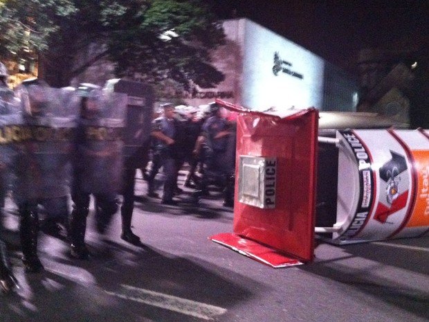 A manifestação foi recebida com brutalidade e grande repressão pela Força Tática da Policia Militar que seguiu reprimindo os manifestantes.